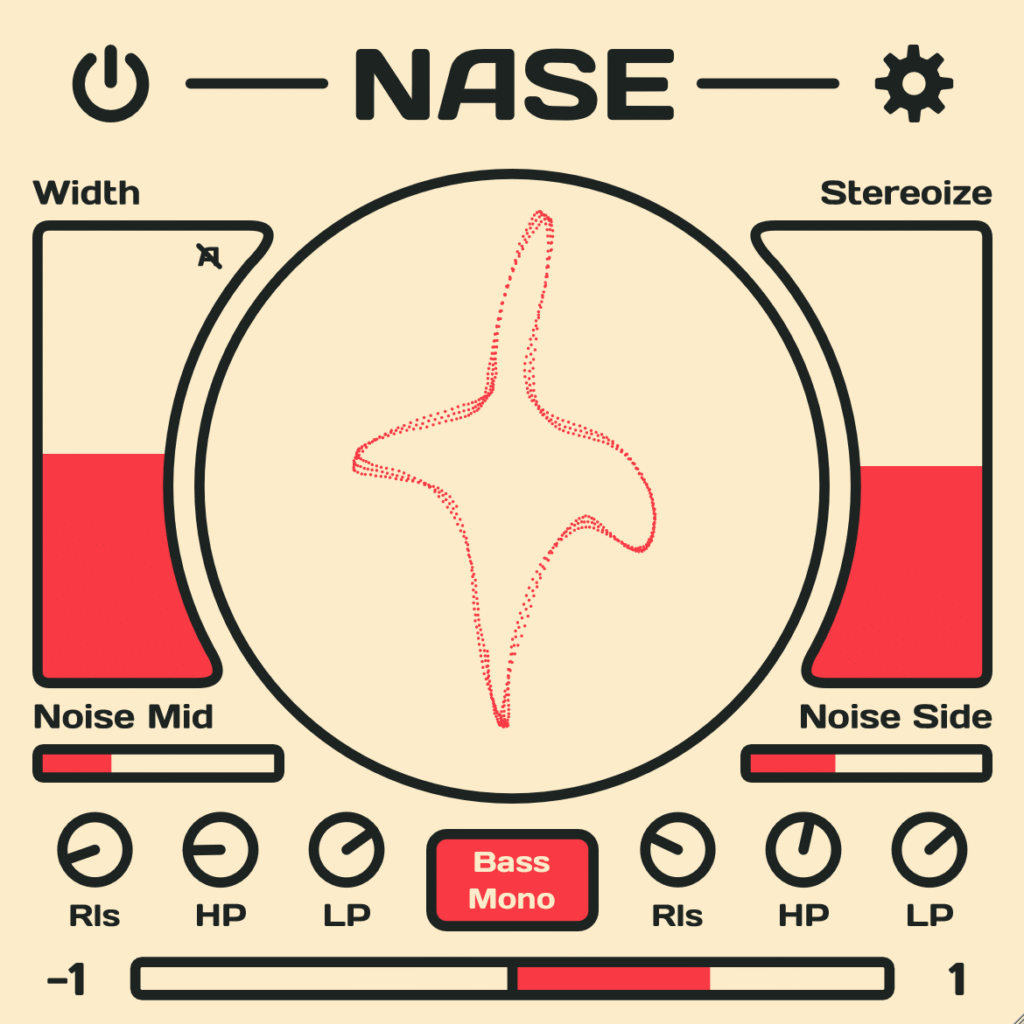 NASE, short for Noise-Assisted Stereo Enhancer, features two noise modules that add noise dynamically in response to your source audio’s volume, separately for the middle and sides. Each module includes controls for release speed, low-pass filtering, and high-pass filtering. Adding noise can enhance your sounds, making them wider and fuller.